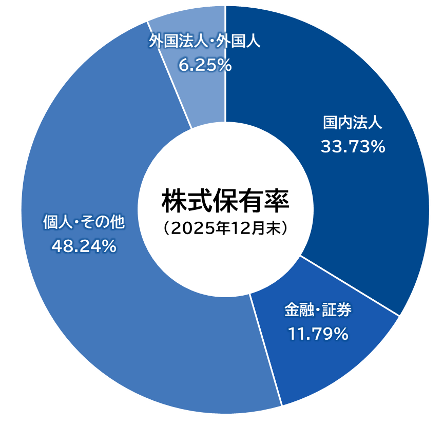 | 所有株式数の割合(%) | - | 11.22 | 0.57 | 33.73 | 6.24 | 0.01 | 48.24 | 100 | - |