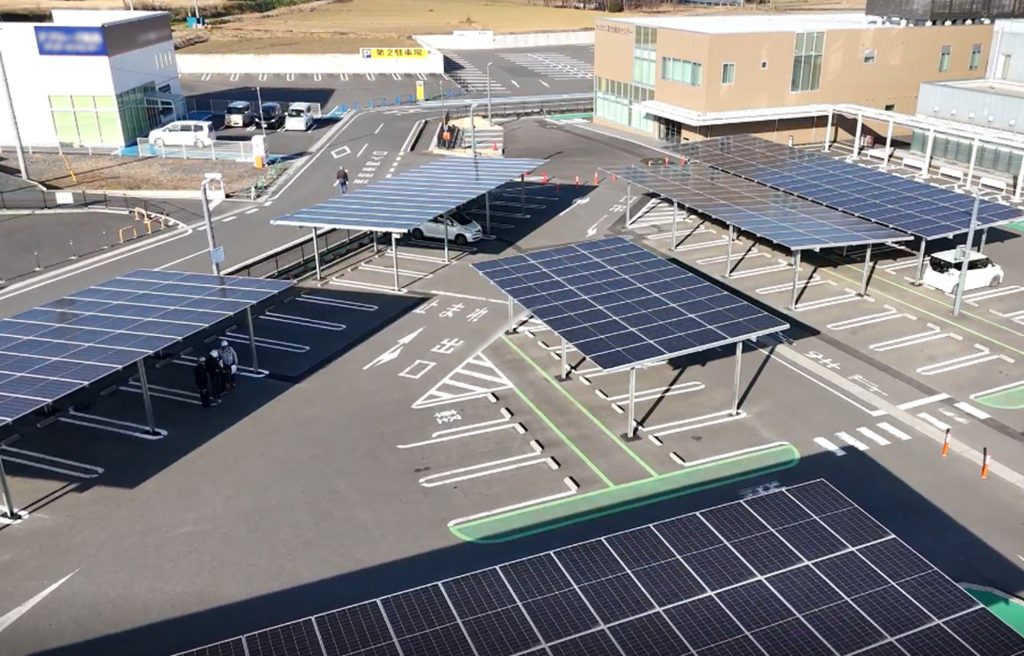茨城県西部メディカルセンターでは、ソーラーカーポート型の太陽光発電設備を設置し、院内で直接電気を使用するオンサイト型PPAによる再生可能エネルギーの導入を開始しました。1月28日には院内にて電気系統への接続式を実施し、2月1日より電力供給を開始しています。