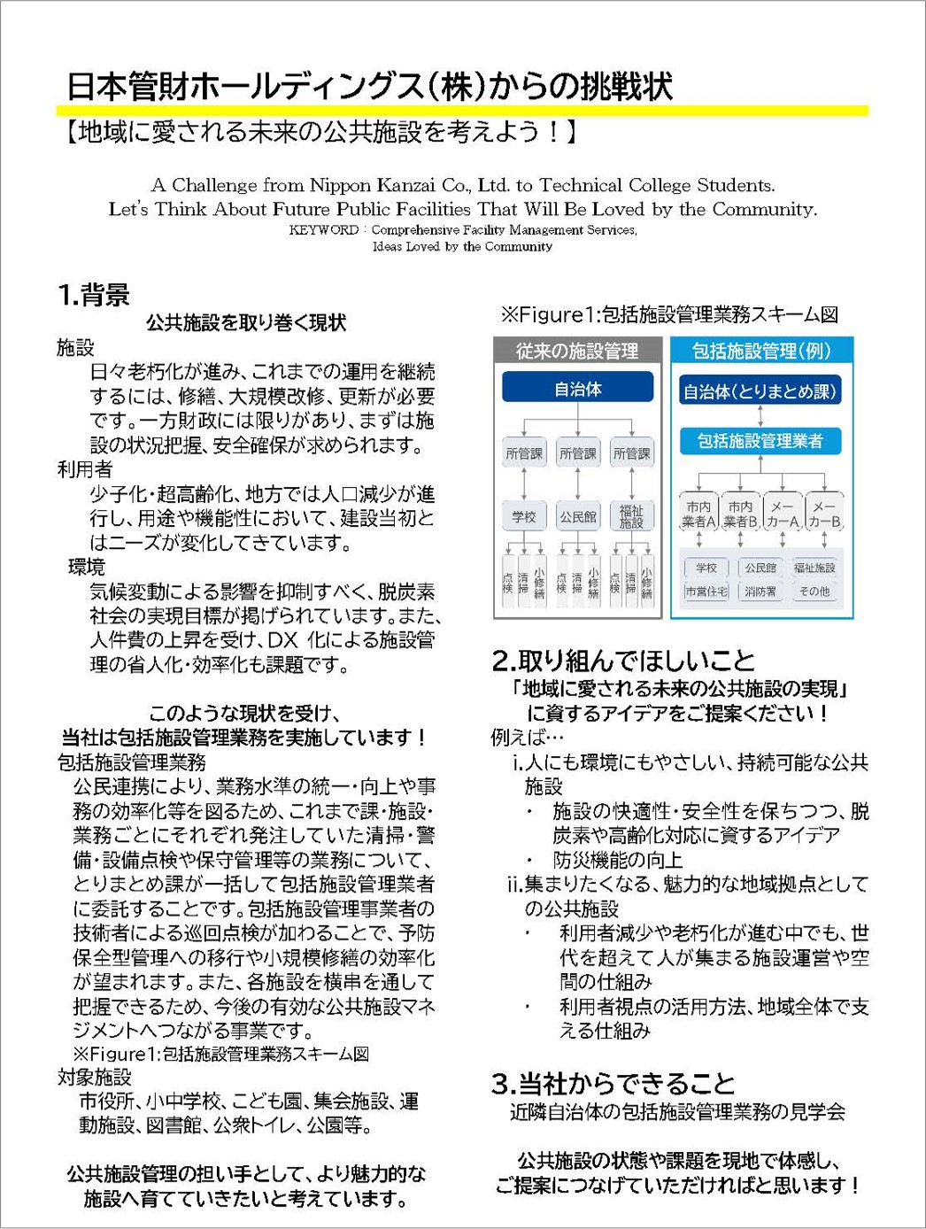 ■日本管財ホールディングスの提示課題「地域に愛される未来の公共施設を考えよう」